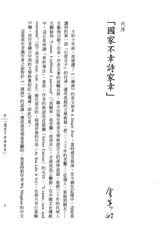 一滴泪:从肃反到文革的回忆|巫宁坤