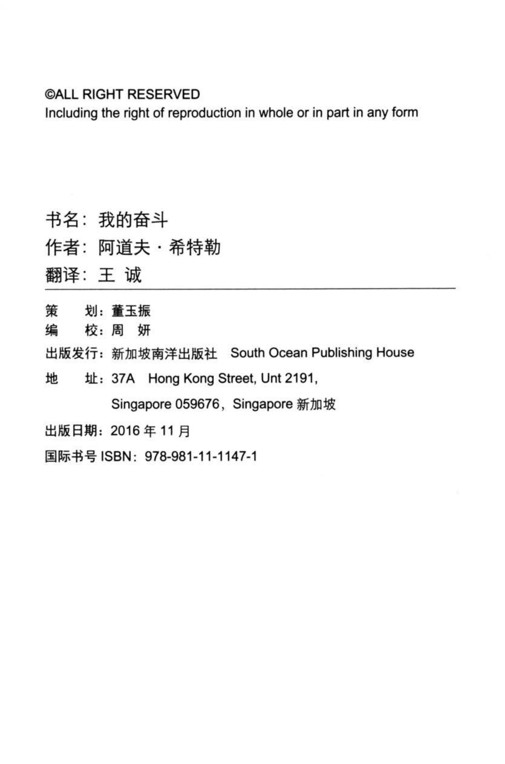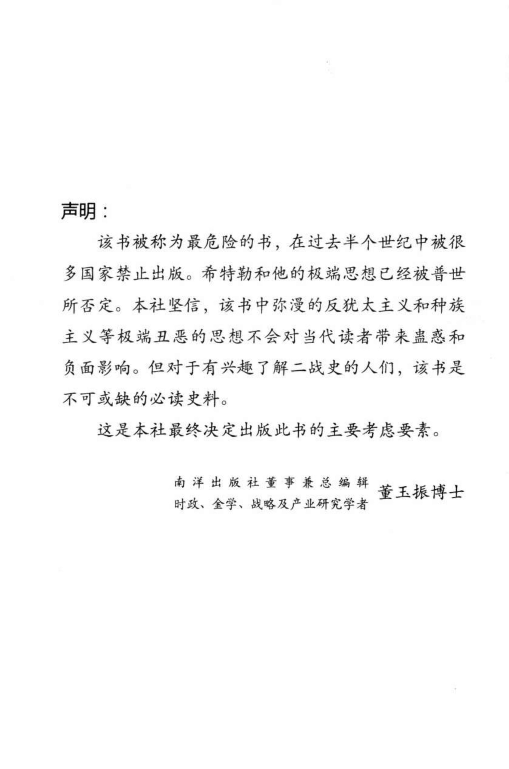 這是全球第一本從最完整的德文原著翻譯,沒做任何刪節的《我的奮鬥》中文版。而以往市面上的中文本都是以英文節選本為底本翻譯的。該書是研究二戰史的重要史料,具有極高的收藏價值。