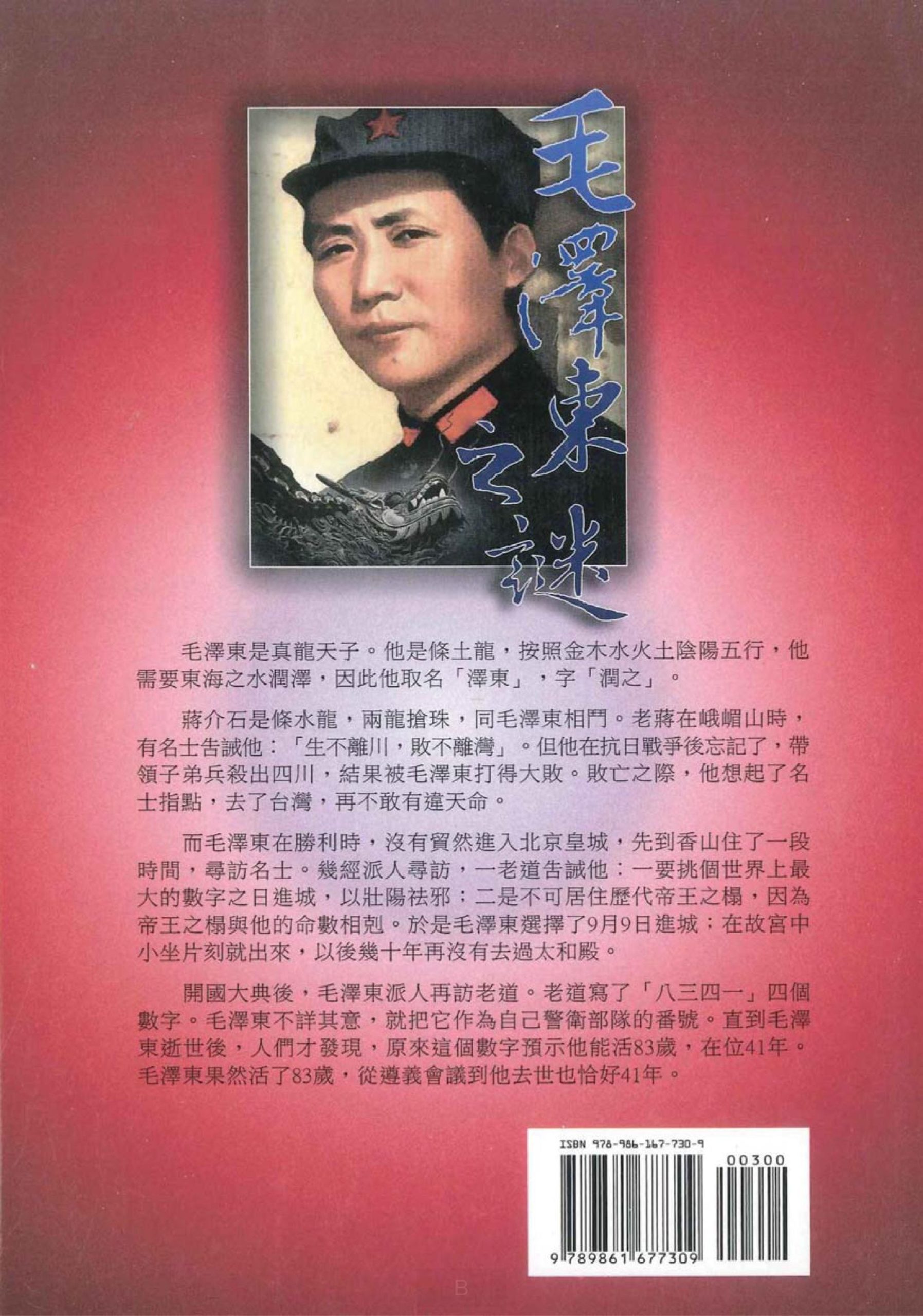 毛澤東,這名在中國現代史上將整個中國大陸納入紅旗之下,而後又掀起文化大革命,使我國文化遭到一番激烈衝擊的共黨頭號人物,具有許多旁人難以輕易透視的「謎」。