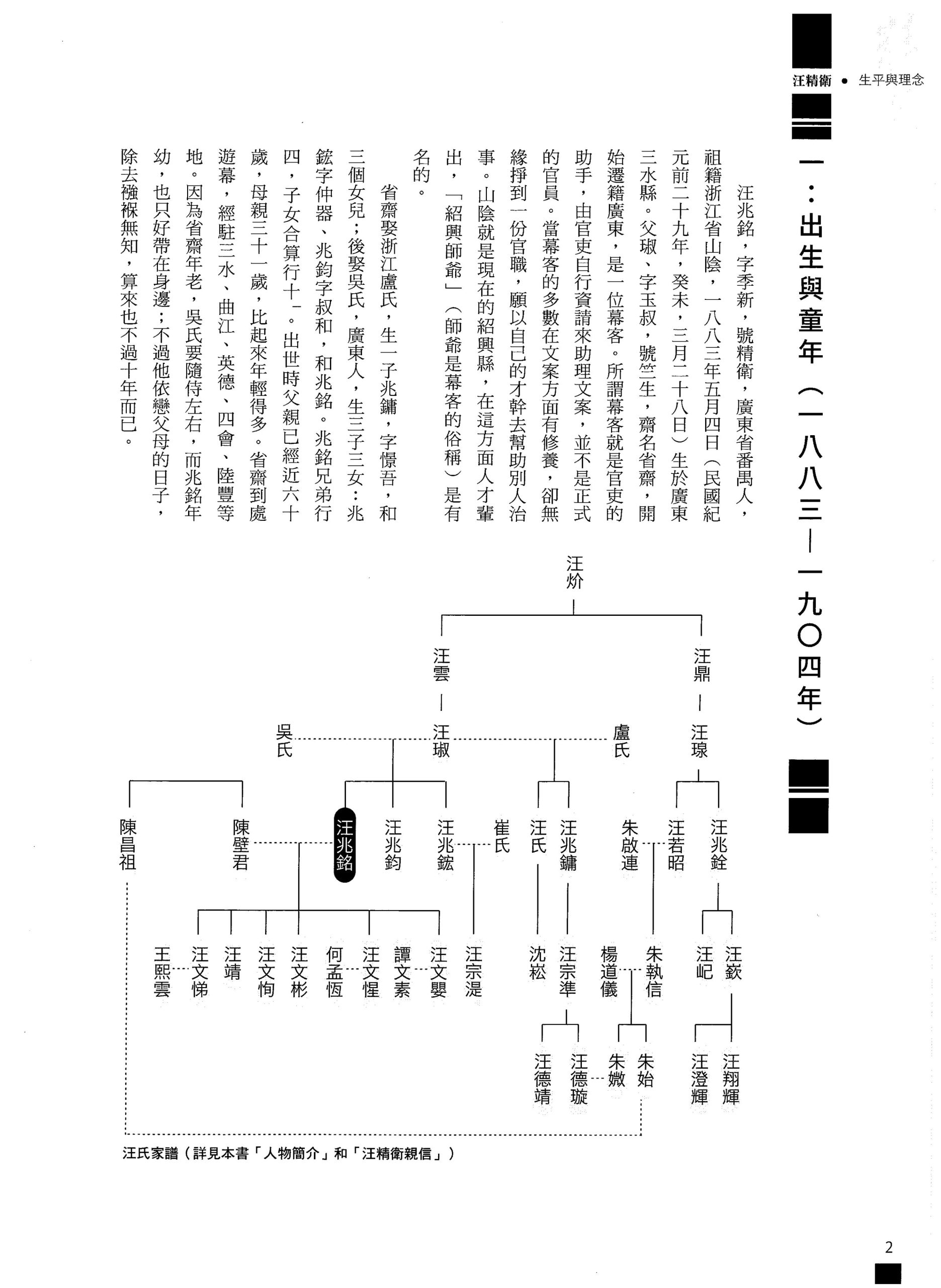 本書為汪精衛女婿何孟恆根據未完成的「自傳草稿」所編撰。該稿始於清末截至1927年底,是汪精衛自述的親身經歷及其所見所聞的獨有見解。本書順序記述汪精衛的一生,並列舉其已發表的政治寫作、演說,也同時把從未刊登的55封私人書信穿插其中。書中更請與汪精衛有着密切接觸的後輩寫出他們與汪氏的回憶,並介紹汪精衛鮮見於其他史料的親人、密友與同僚,藉此顯示汪氏的人際關係。
