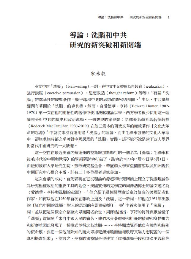 導論:洗腦和中共──研究的新突破和新開端/宋永毅
