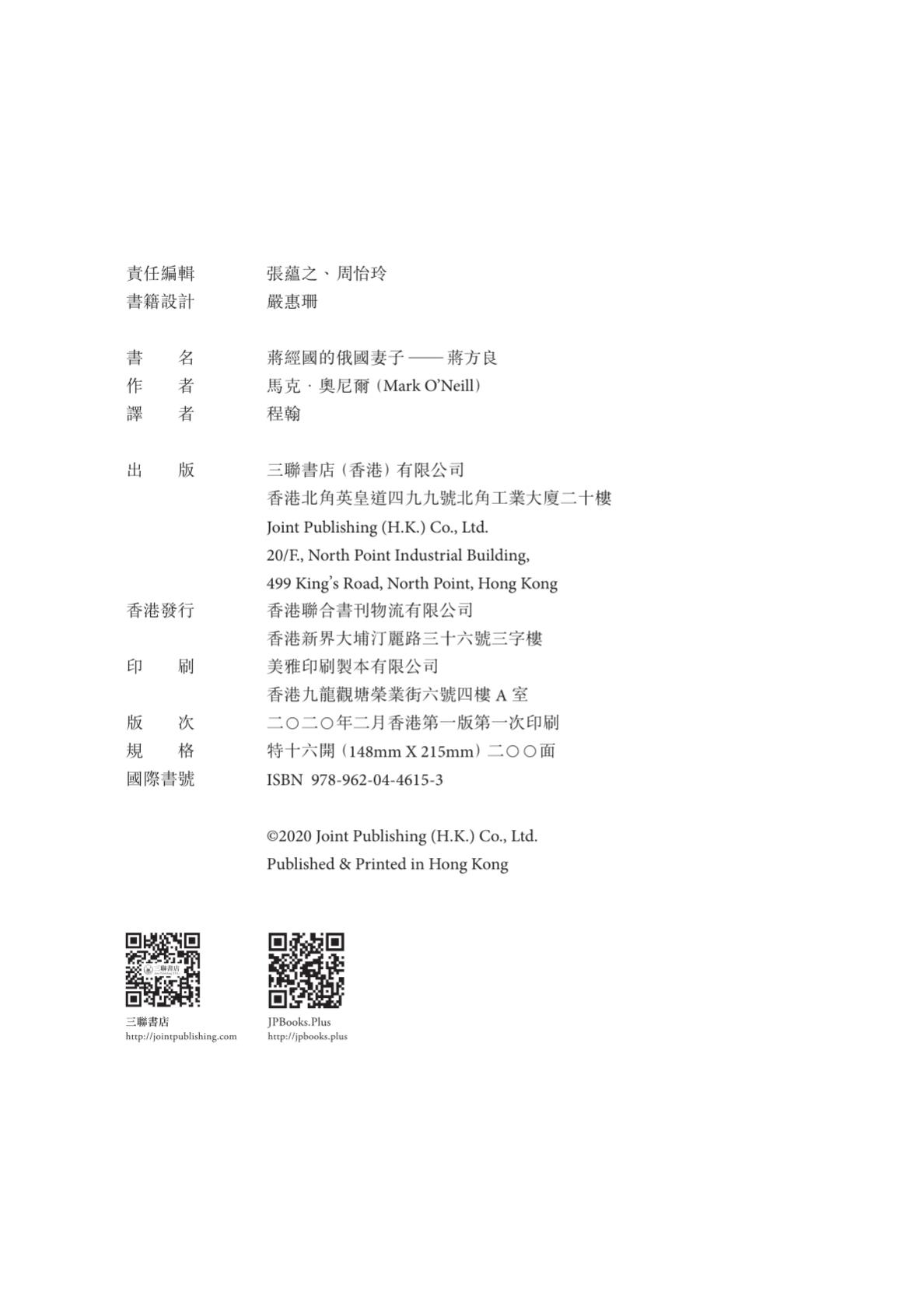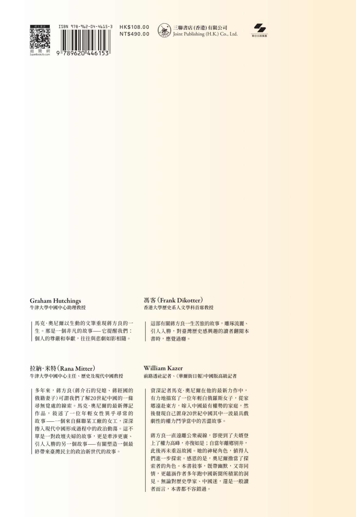 在《蔣經國的俄國妻子──蔣方良》,作者馬克.奧尼爾(Mark O’Neill)便梳理出蔣方良的一生,還親身訪問了蔣良方的次子蔣孝武、三兒媳蔣方智怡和明星咖啡廳主理人簡靜惠等人,務求最貼近地、以一手資料將蔣方良的面貌呈現出來。