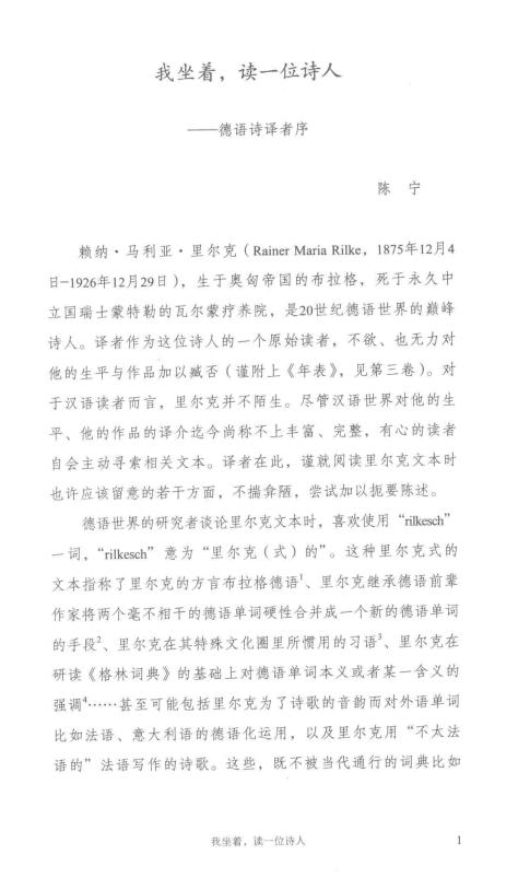 陈宁(1970—2012年),出生于沈阳,辽宁大学中国语言文学系毕业,生前为《沈阳日报》编辑,2002年创办“里尔克中文网”,多年从事里尔克诗歌的汉译与研究。