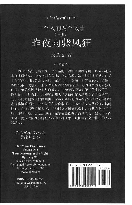 [黑色文库]昨夜雨骤风狂:一个人的两个故事(上册)|吴弘达
