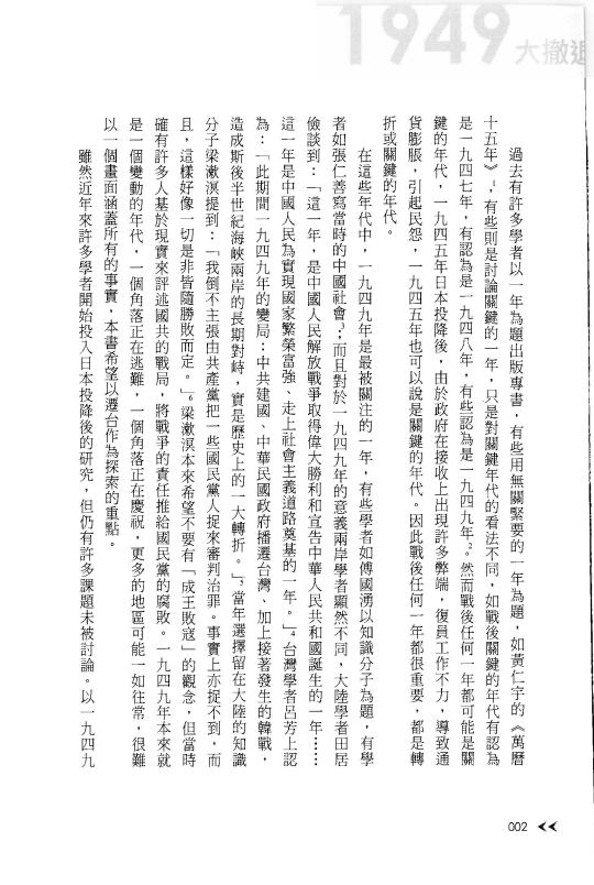 本書從蔣介石來台前的部署與撤退計畫、第三次下野,到來台初期的反攻努力與復行視事,以及政府各機關、重要文物的遷台經過詳情,還有一百多萬的外省人來台後,對台灣造成的衝擊與影響等。本書娓娓道來,值得您細細品味。